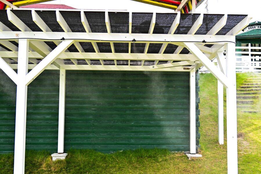 暑い夏の時期でもミストで快適、夏季限定で開かれる犬用プールは深さが2タイプに分かれているので小さなわんちゃんからアクティブな大型犬まで思い切り楽しめます。