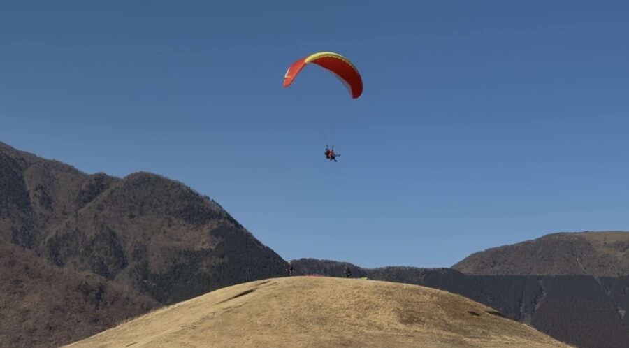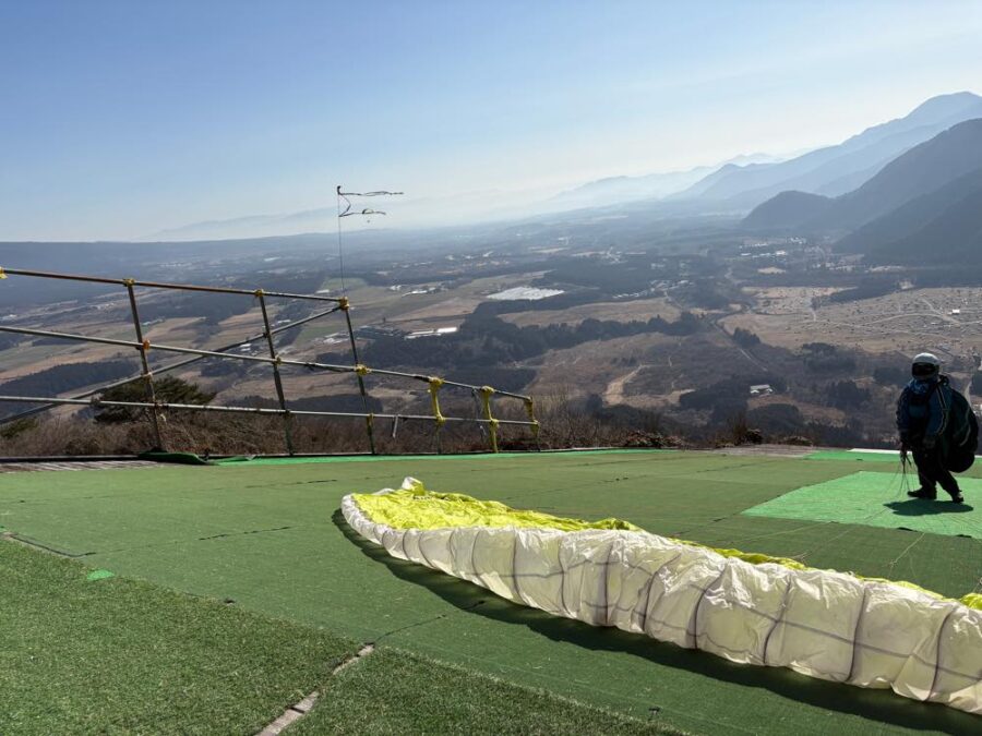 小山から飛ぶ方が簡単そうに見えますが、実際には自分でパラグライダーの操作をしなくてはならない分、難易度は上なのだとか。