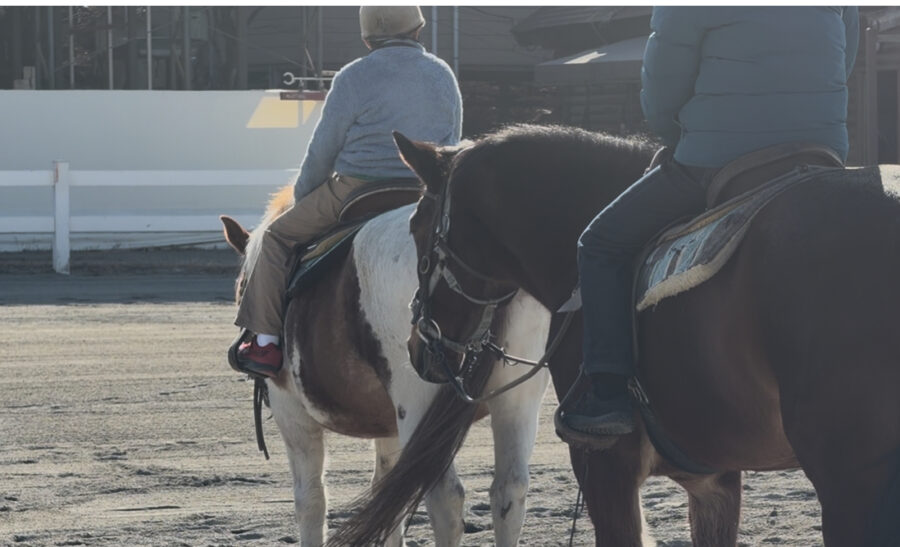 馬たちにとってはいつものお散歩道、インストラクターさんが一緒にいてくれるから乗れている、というのはもちろんですが、こうして施設の外の道を馬と歩く体験を通して乗馬の楽しさを改めて知ることができ、本当に良い経験になりました。