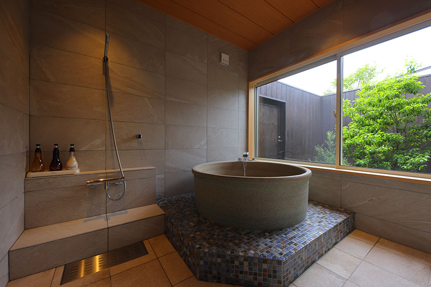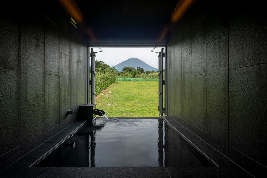 室内面積約120㎡のプライベートヴィラタイプの宿泊棟ではサウナ・浴室からも富士山が望め極上の休日が過ごせます。