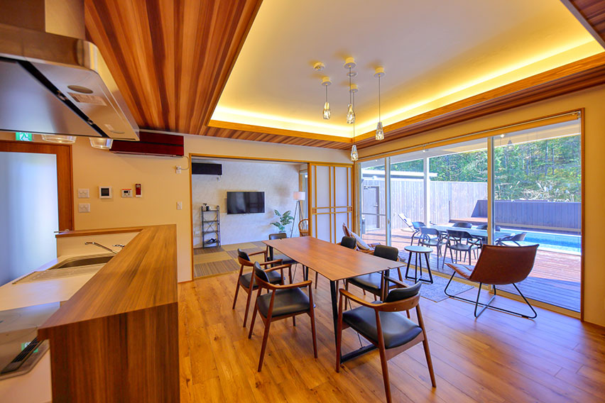 全棟にプライベートプール・客室天然温泉・バレルサウナ・ファイヤーピットを備え、快適かつラグジュアリーな滞在が楽しめるアウトドアリゾート施設です。