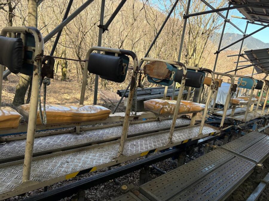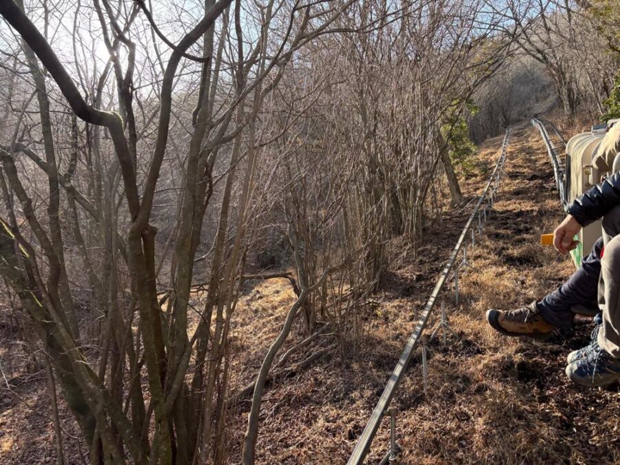 安全ベルトや固定器具もないのでちょっぴりハラハラしますが、木々に囲まれた斜面をモノレールで登る体験が遊園地のアトラクションのようでワクワクします。