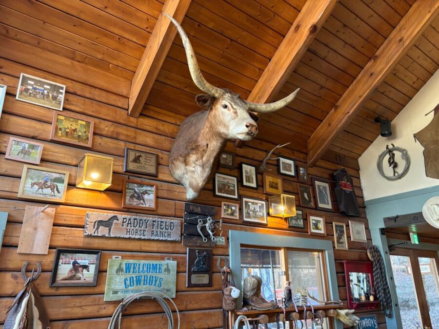 まるで海外のロッジのような非日常感がある素敵なホールで受付をし、馬の乗り降りや指示の出し方についてのDVDを鑑賞します。