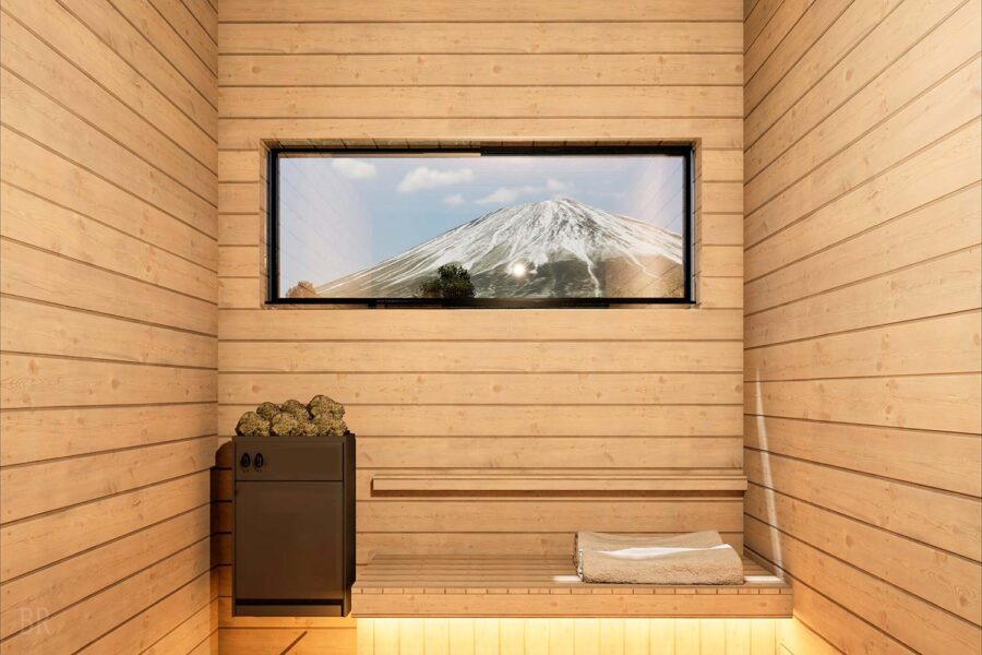 中庭にはガラス張りのサウナとジャグジーも設置してあり、富士山の美しい景観とともに整い体験ができますよ。