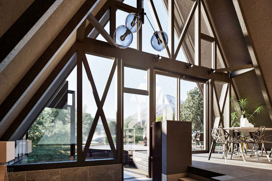 個性的な三角屋根で開口部が広く、リビングや浴室・サウナ・プールから絶景の富士山が望める特等席です。